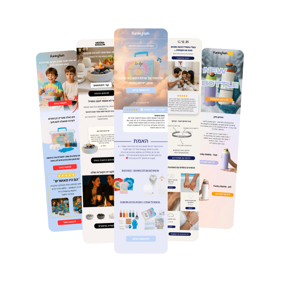 - 3–4 קמפיינים שבועיים – כתובים, מעוצבים ונשלחים במדויק לרשימות הנכונות